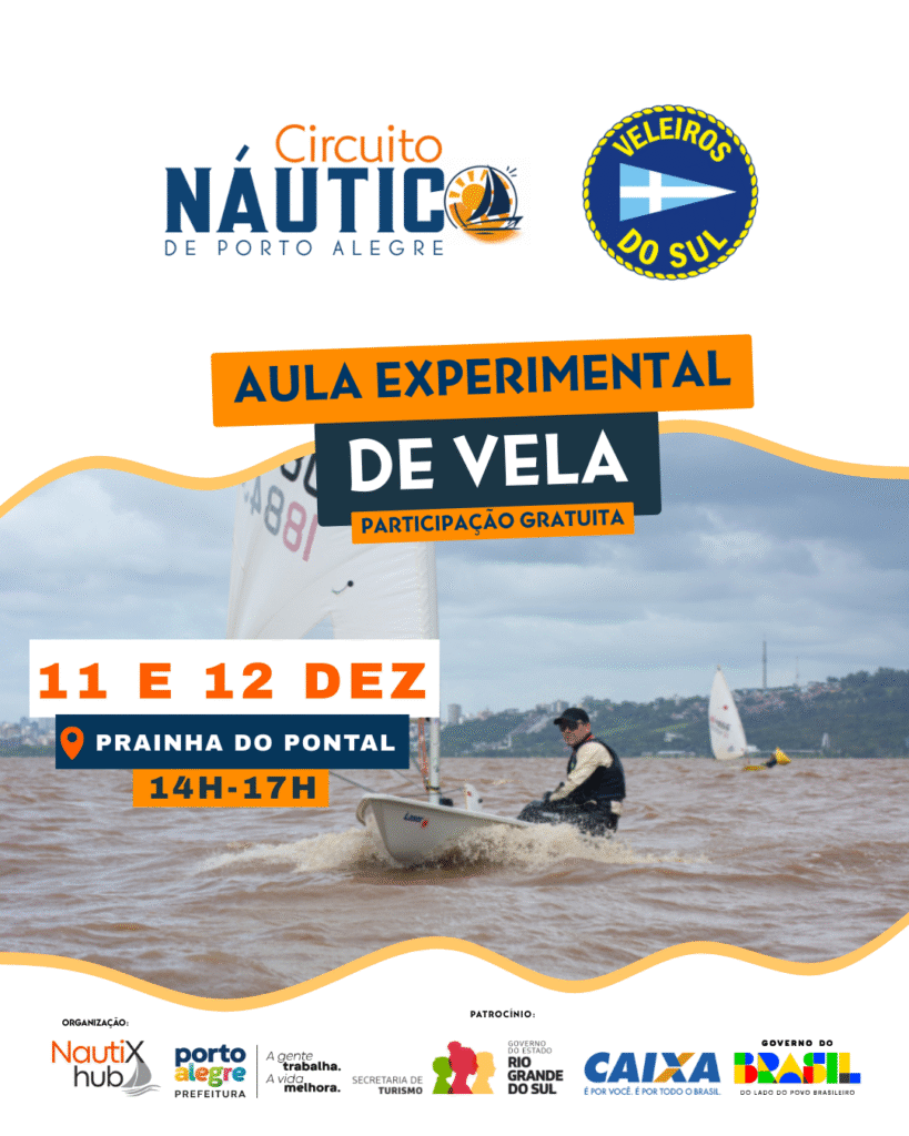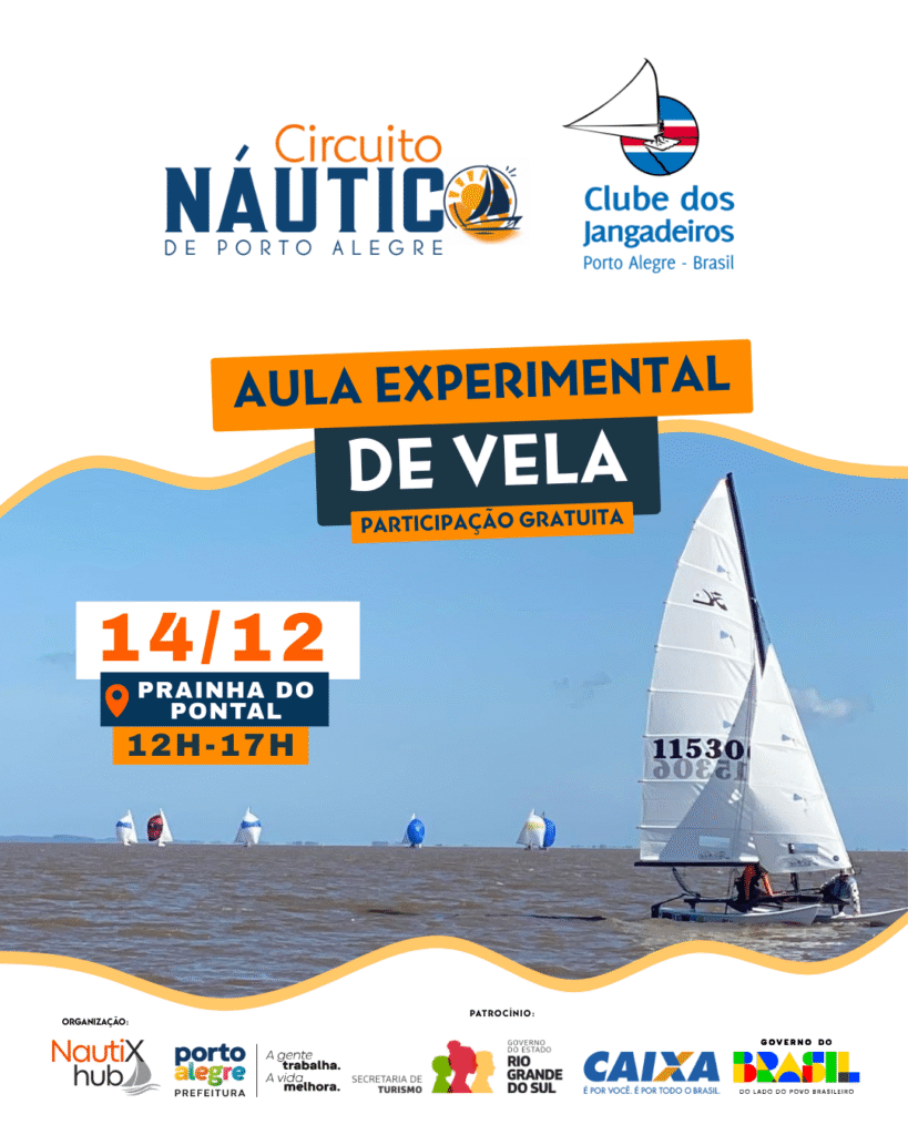 No dia 14 de dezembro, das 12h às 17h, a Prainha do Pontal vai virar porta de entrada para quem sempre sonhou em velejar. ⛵ O Clube dos Jangadeiros promove aulas experimentais de vela, totalmente gratuitas, para aproximar mais pessoas do universo náutico e do nosso Guaíba. É a chance perfeita para sentir o vento na vela, aprender com quem entende e descobrir um esporte que transforma a relação com a água e com a cidade. Chega cedo, chama a família e vem viver essa experiência incrível. 🌊✨ Traz protetor solar, boné e a tua garrafinha de água! Não requer inscrição, serão realizadas aulas das 12h às 17h. É só chegar! Traz um quilo de alimento para doar! 🥫🥫🥫